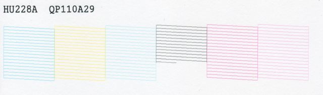 今度は普通紙に印刷で出力、すると出ないノズルがモロに反映されている。